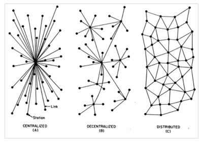Figure 1. Centralized, Decentralized, and Distributed Networks. A distributed, virtualized approach to database management enables quick combination and analysis of large volumes of data-where and when it is needed.