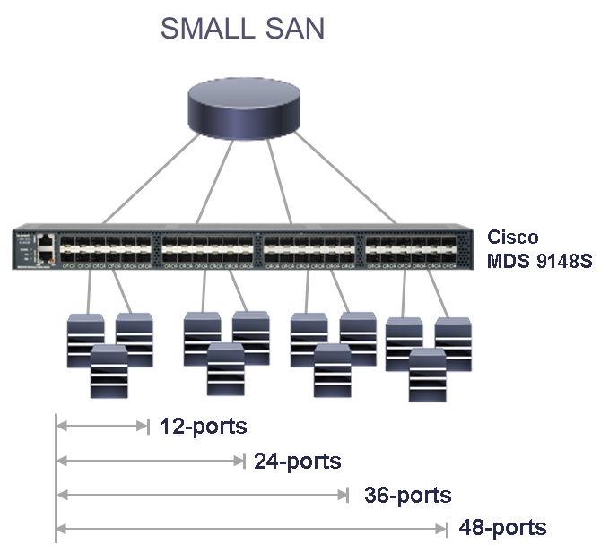 Customer Use Case: Customer will use the 9148S to design small SAN environments like departmental SANs. Larger Enterprises will use 9148S as ToR Switch for ease of cabling and ease of Management. In addition to that 9148S will be used for BC/DR or remote locations. Pay as you go model is very attractive to customers as it allows them to grow the port count from 12 to 48 without any price penalty as their network demands grow.