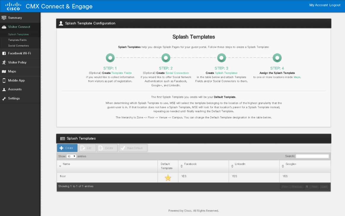 In MSE 8.0, we have dramatically simplified how CMX Connect is configured. The administrator only needs to indicate information they'd like collected (such as, name and email), and the zones in which the template will be used.