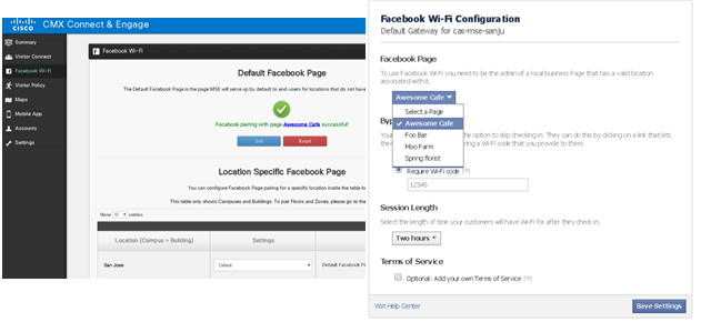 Configuration for CMX for Facebook Wi-Fi with MSE 8.0 is now a simple 2 step process. You simply connect the MSE to your Facebook business account and then configure the Facebook Wi-Fi parameters. No policy based routing and no proxy required!