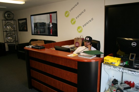 Yes, Raz and Dave have planned for growth. The new waiting room and front office now houses new couches and a TV. New wheel displays are set-up, vendor banners are hung, and the walls are newly painted.There is a bunch of exhaust and performance parts displayed around the room.