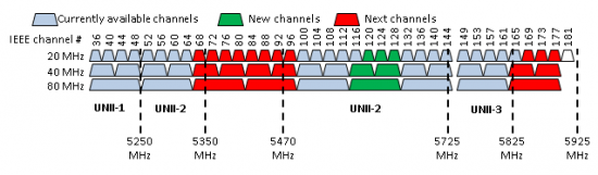 When we think about this change, we need to remember that the three channels included in the TDWR band represent 60 MHz of bandwidth. So, re-opening TDWR translates into restoring three 11a channels. More importantly, it helps to enable two extra 11n channels (of 40 MHz each)-and even more importantly, it helps provide an extra 11ac channel of 80 MHz.