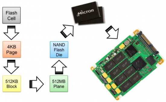 Finally, "Blocks" are aggregated into a "Plane". Multiple "Plane" forms a flash die. Multiple die forms a chip and chips are used to create an SSD.