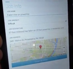 One of our partners, Technuf, has built a solution called Aphelia. It's a mobile app that ties into Cisco IP Interoperability and Collaboration Solution (IPICS) and our Instant Connect push-to-talk (PTT) solution. The dispatcher receives alerts on a tablet, such as "70-foot redwood tree has fallen on 25-foot power line in residential zone." The dispatcher taps a button to see nearby field workers with the required expertise. Another tap assigns them the task.