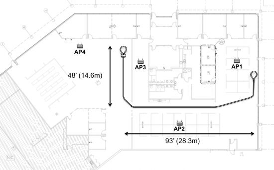 Four access points were placed around an office building, as well as an O-gauge model train set. We then put various Wi-Fi clients one at a time on a flatbed traincar and observed the roaming performance and other Wi-Fi statistics as the train -with the client in tow -moved throughout the building. The train was moving at walking pace.