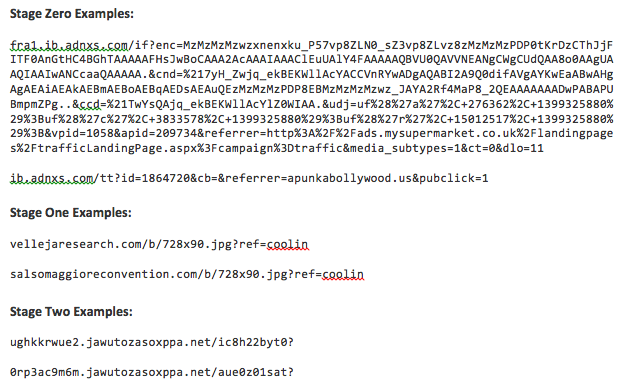 In this latest campaign we detect initial stage zero malicious advertisements redirecting to advertising banners (among other stage one destinations) on stage one websites where redirection is again occurring to Angler EK landing pages (the full list of URIs is located below in the IoCs).