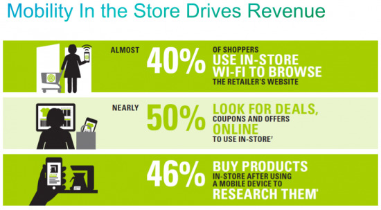 The mobile retail trend is here to stay and growing, today almost 50% (Cisco, 2014) of all shoppers use mobile devices as an integral part of their shopping experience and smartphone shoppers are 14% more likely to convert than non smartphone shoppers while in-store (Deloitte, 2014).