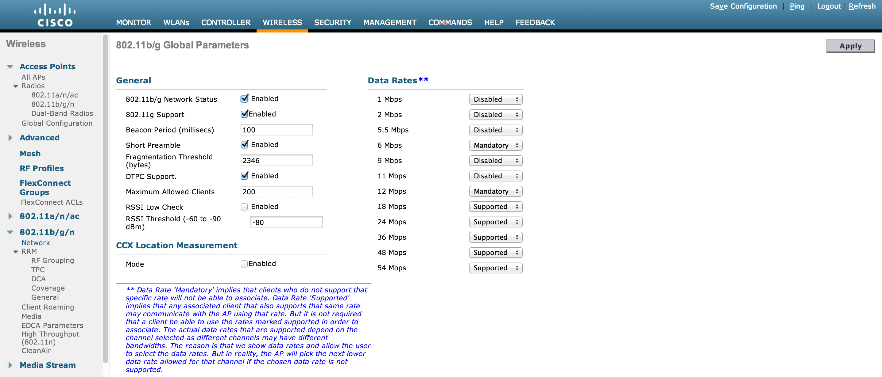 Now that all your devices are off the network, you can now disable the 802.11b data rates.