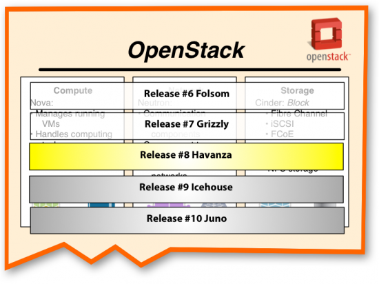 "OpenStack releases basically follow an alphabet-based ordering for releases. The current release is Havana, the eighth," he explained. "Basically it's the release that each of the individual projects contribute towards in terms of milestones. There are improvements to infrastructure on the Nova compute side that improves resource management, improvements to the Swift object storage side to optimize disk operations and caching, Cinder block storage improvements for migration, performance, and scalability, and the Neutron networking side got VPN and Firewall capabilities."