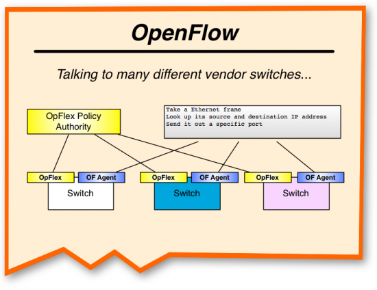 "Now, I heard that Cisco is submitting something called OpFlex into the IETF standards process," I said. "Is that some sort of competing technology to OpenFlow?"