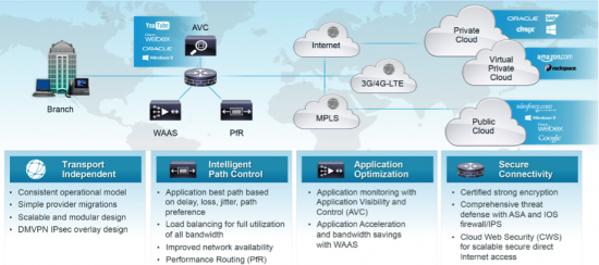 IWAN works on the Cisco ISR and ASR series, which serves an integrated Platform for IT Simplicity. It includes: