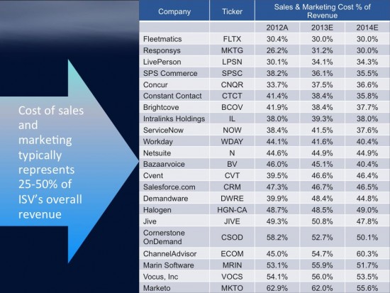 There are plenty of reasons why the cost of R&D is going down (availability of open source, global development resources, higher level functionality) and technology reasons the cost of operations is going down (advent of compute & storage cloud services, increased automation of security, availability and performance management), so looking forward, the cost of sales could go to 60 or 70% of revenue.