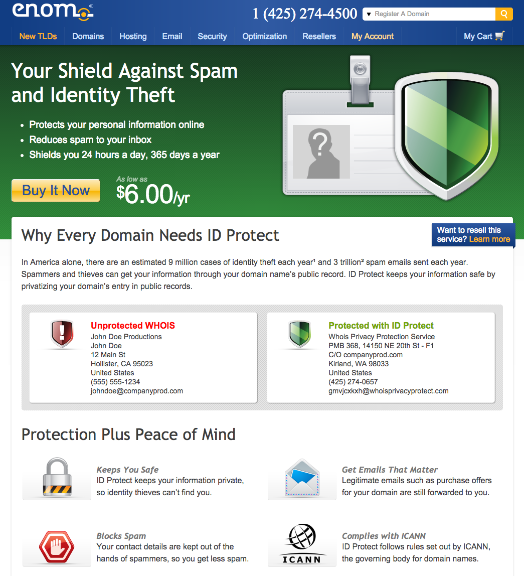 This information leakage exposed the affected users to a number of possible threats, some of which are described in eNom's advertisement for the privacy protection service, which states "In America alone, there are an estimated 9 million cases of identity theft each year and 3 trillion spam emails sent each year. Spammers and thieves can get your information through your domain name's public record. ID Protect keeps your information safe by privatizing your domain's entry in public records."