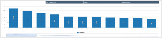 Figure 3 shows the number of devices total at Cisco Live! These figures also show a neat new chart feature, thanks to the 10.0 release. The new chart feature allows for a more focused look at the data by providing a navigator bar which can zoom in on a specific range of interest. You'll notice that Figure 3 is a zoomed in image of the most visited zones during Cisco Live!