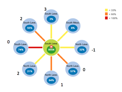 MSE 10.0 also includes some new charts. The Crossover feature shows what percentage of people visited a certain area also visited another specified area. Figure 5 shows this new chart in action. Data for Cisco Live! shows what percentage of the 8554 people that visited the "South Level 1" floor also visited another floor. South Level 1 was of special interest to us, as this was the main entrance to the entire convention. Information provided within the graph also indicates that "South Level 0", the World Solutions area, was the most visited floor of the entire week. Having this information will prove invaluable to planning for our next convention.