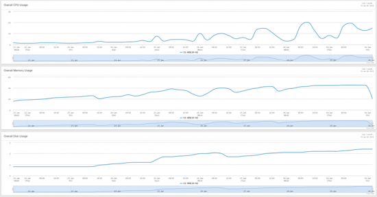 Figure 8 CPU, Memory and Disk Space consumption during the week