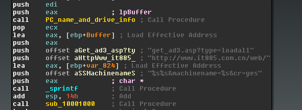 The embedded DLL (1fc6034b3ec99a01e3b2cde22846772656481d7374209ca0f068c8ab181bc8d9) actually contains some of the C&C functionality. The type and cr parameters are hard coded to "loadall" and "yes" respectively.