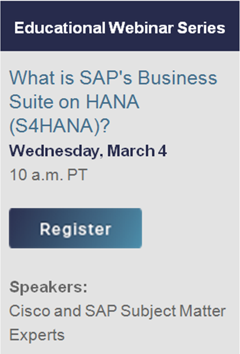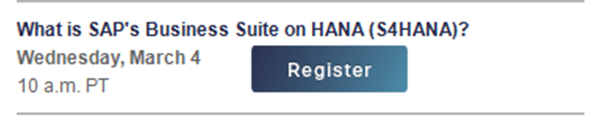 These webinars have been created to educate and provide you the opportunity to ask the hard questions about how these SAP and SAP HANA solutions will fit into your organization.
