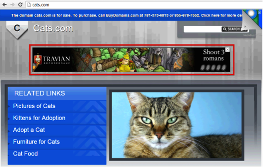 The plugin code, when run from an initial page, will inject multiple browser ads into specific portions of the DOM. From the user perspective, the displayed page will slightly change as shown below: