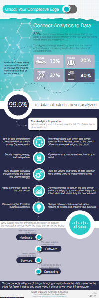 Cisco's rich portfolio of big data and analytics solutions can help you unlock your competitive edge: