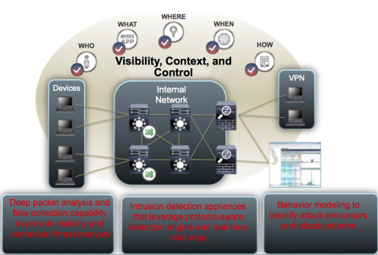 You may ask, how does this architecture do what it does. Cisco's Cloud Security Architecture uses signature-based detection methods to detect and stop threats and various intrusion events. The architecture uses the following elements to identify suspicious traffic and provide visibility into evasive and dangerous threats.