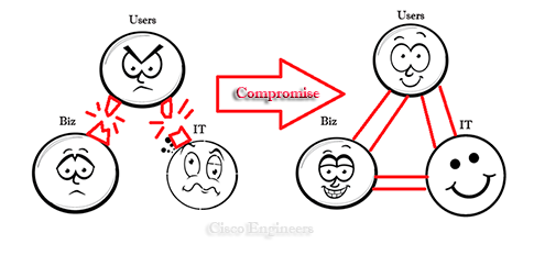 The relationship between IT and end users is most effective when both sides work together and make compromises. Now my question is, if both sides have read this article and tried to follow their points, Cui bono? (Who benefits?).
