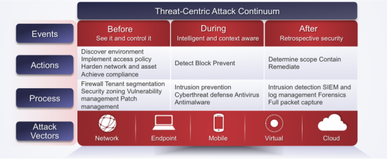 Today, secure corporate networks require multiple layers of protection and implementation of a unified, system-wide, security strategy. Establishing a secure end-to-end data center requires multiple layers of security, inspection, visibility, monitoring and logging in order to complete the attack continuum as shown below: