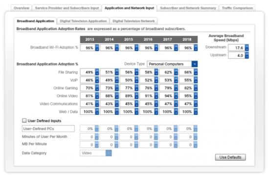 Last June, Cisco released an update to its annual Visual Networking Index (VNI), 2013 -2018. The forecast projects a global annual run rate of 1.6 zettabytes IP traffic by 2018 (up from 614 exabytes of global IP traffic in 2013). A zettabyte certainly sounds like a big number (equivalent to 1 billion terabytes, external storage drives generally come in a terabyte denomination). But how can this forecast methodology be applied to an individual cable or a telecommunications provider's footprint? Our updated Cable/Telco Service Provider Abstract Network (CT-SPAN) tool can help answer this question. CT-SPAN is developed using the latest VNI assumptions for fixed networks and enable you to quickly develop customized service provider scenarios to estimate the annual traffic forecasts and revenue. It's as easy as 1-2-3.
