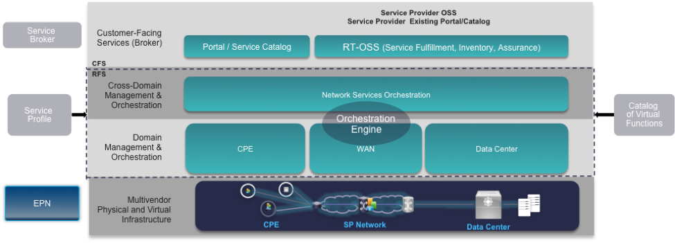 - The EPN (bottom layer) is the multivendor physical and virtual infrastructure