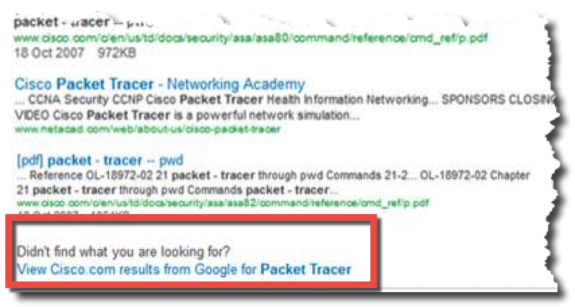 4: We made many other changes to Cisco.com's search, including tuning the relevancy of results and improving the look and feel of the search results page. However, in case the result you are looking for doesn't present itself, we have integrated Google's search service (shown below) as an alternative. This link, at the bottom of every search results page, returns the results from Google for the term you searched for on Cisco.com with one click.