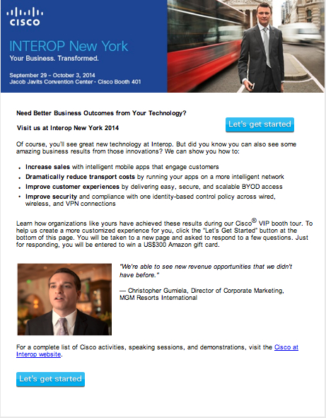 An industry-specific invitation to Interop New York activities, matched to customer priorities for this vertical market, yielded twice the average open rate