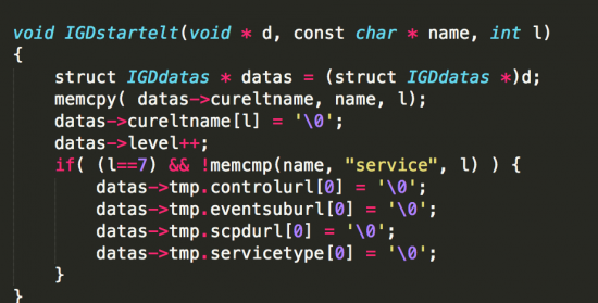 Talos is disclosing the discovery of an exploitable buffer overflow vulnerability in the the MiniUPnP library TALOS-2015-0035 (CVE-2015-6031). The buffer overflow is present in client-side XML parser functionality in miniupnpc. A specially crafted XML response can lead to a buffer overflow, on the stack, resulting in remote code execution.