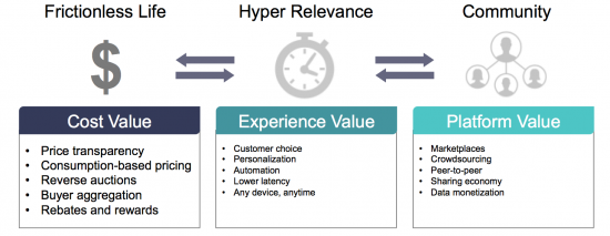 In this new environment, three digital business models are pointing the way forward: 1) Frictionless Life, 2) Hyper-Relevance, and 3) Community. Each model delivers a different type of value.