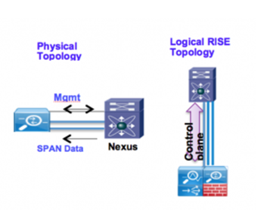 Cisco RISE is being used by a large number of customers to tightly integrate the Cisco Nexus series switches with the Cisco Prime NAM to provide VDC awareness and SPAN traffic across multiple VDCs without burning slots on the switch. RISE overcomes the limitation of applying SPAN configuration only in the VDC to which the management cable is attached by intelligently managing the movement of NAM data ports and SPAN configuration to other VDCs as needed. The integration includes the following main features: