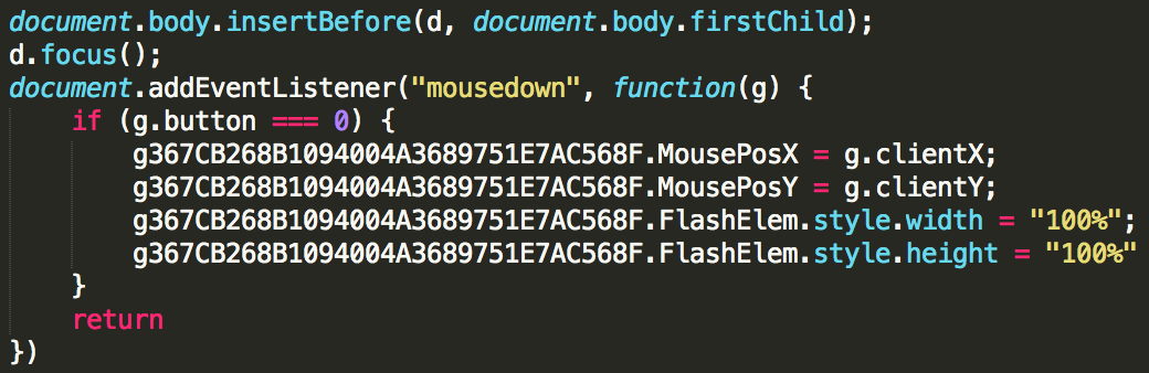 These characteristics match the behavior of the "Infinity Pop-up Toolkit," a piece of software that is specifically designed to bypass the pop-up blocker in Google Chrome in order to present users with pop-up ads. This toolkit is currently in use by several advertisers on hundreds of sites and is delivered and executed via a Flash file (SWF). These Flash objects use clickjacking to fool the user into clicking on an invisible object in order to execute a privileged JavaScript action.