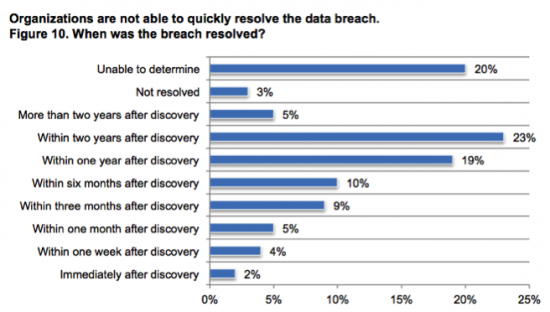 Ponemon Institute called 2014 the year of the "Mega Breaches," which will be remembered for its series of mega security breaches and attacks. These "Mega Breaches" are perfect examples of what is commonly known as Advanced Persistent Threats (APTs). The Ponemon Institute survey asked, among many questions, "When was the breach discovered?" Surprisingly, the results revealed that ONLY 2% of the respondents in the survey discovered their breach within one week of after the incident and a staggering 90% were six months or longer, if at all.
