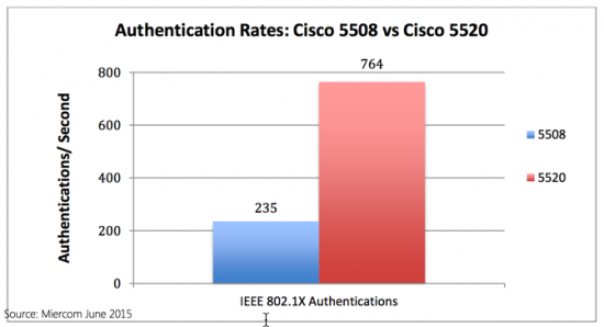 After performing simultaneous authentications and roaming tests using various authentication methods and encryption types, the Cisco 5520 Wireless Controller showed 3.25 folds improvement over the Cisco 5508 Wireless Controller.
