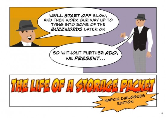 To that end, allow me to work through another Napkins Dialogue on how applications communicate with their storage. The road is longer than just one Dialogue, of course, so I'm breaking it down into parts for easier digestion.