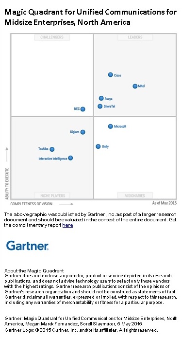 Cisco positioned highest in "ability to execute" among Leaders in the first ever Gartner Magic Quadrant for Unified Communications for Midsize Enterprises, North America.