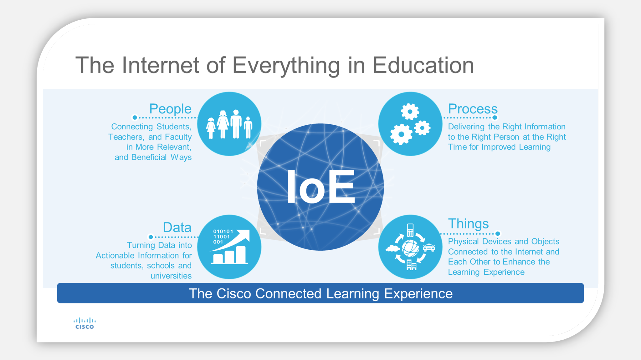 I'll be joined by leaders at the University of La Verne, and Cisco's Mary Schlegelmilch to discuss how IoE is transforming learning and improving outcomes in our Transforming to a Digital University, School, or Campus to Improve Learning Outcomes with IoE session.
