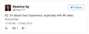 This is just a sampling of the questions, conversation, solutions and insights shared during this particular #CiscoChat. Take a look at the recap and use hashtag #CiscoChat on Twitter to share your own answers to the questions we posed (including what would you do with a Gig in your house). Be sure to bookmark our calendar and join our next discussion using hashtag #CiscoChat.