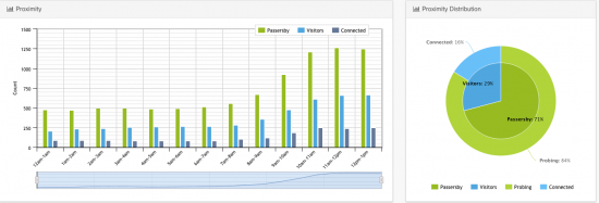 - Visitor Counts reports the number of passerby's and in-venue visitors, who stayed more than 5 minutes (or whatever duration you indicate), and out of those numbers, how many actually connected to the wireless network.