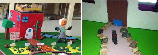 The winning Barcelona entries: Modern Garden (left) and the "Smart House," showing a cat with a collar that acts like a key.