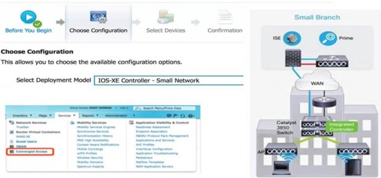 To do so, you simply use Prime Infrastructure to launch a Converged Access configuration workflow. With easy-to-use configuration templates, you can complete most common deployment scenarios from start to finish by following through your workflow. Just a heads up. I have more information on the workflow in the Wireless Technology Pack discussion below.