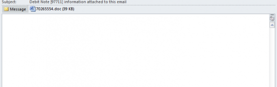 Sample Email from First Dridex Spam Campaign. Note it has a blank body.