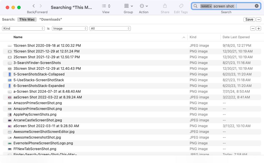 If you believe you saved the screenshot to a folder, but aren't sure which one, you can use Finder on Mac to search for it. While you can also use Spotlight to search on Mac, you can easily narrow down the search results, if necessary, by using Finder instead.