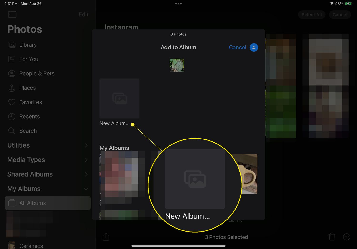 Choose an album to put those pictures into, or choose New Album to create one.
