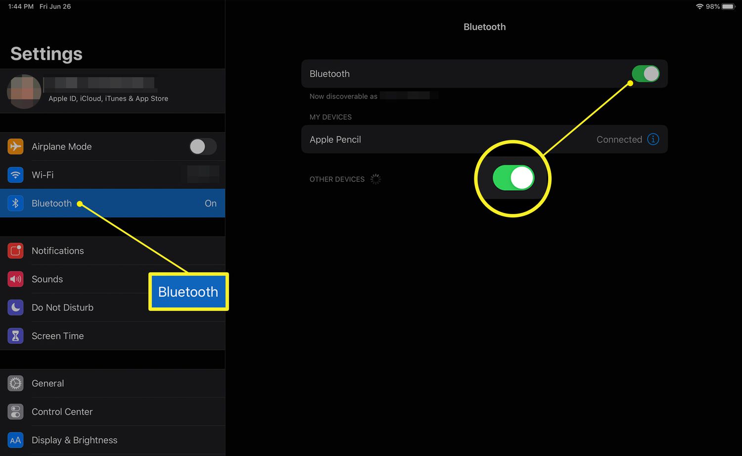 Before you pair any device with the iPad, you must turn on Bluetooth. Here's how to do that.