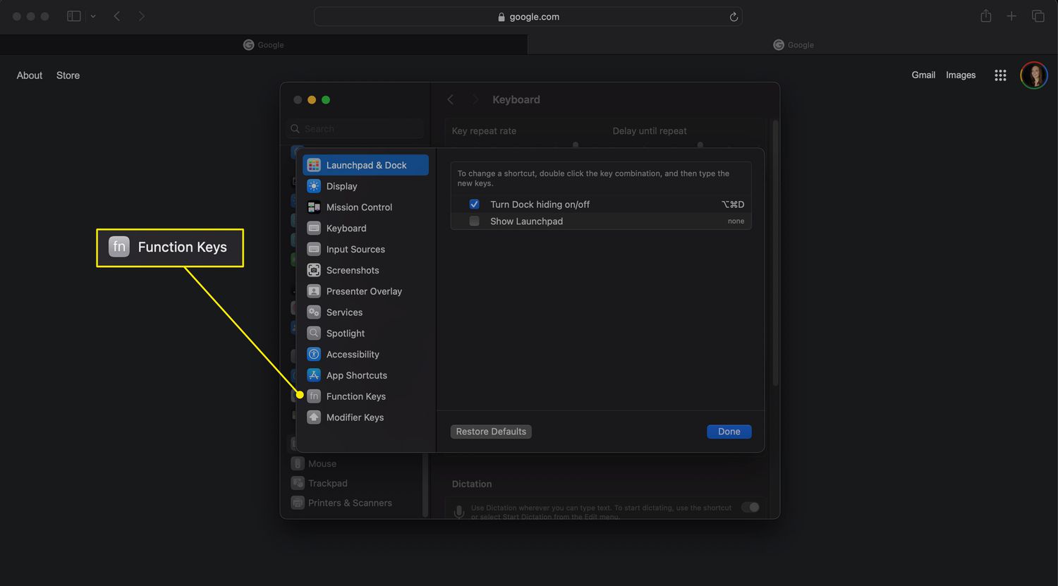 From here, toggle Use F1, F2, etc. keys as standard function keys on, then click Done.