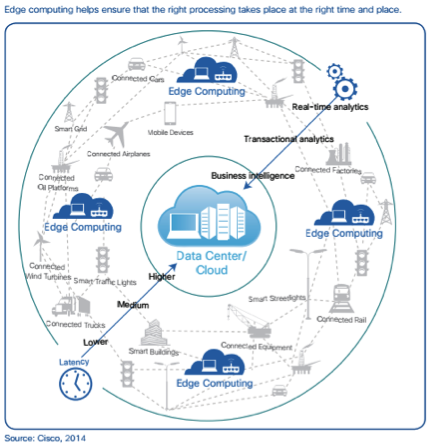 Why do we need intelligence at the edge? Cisco forecasts that there are going to be 50 billion connected "things" or "devices" in the "Internet of Things" world by 2020. Most of these devices are at the edge of the network and can generate zettabytes of data. So, a traditional two-layer IoT architecture that connects the devices and things directly to cloud, where the IoT application logic resides, presents two big challenges. The first is these applications have strict latency requirements; the devices, often geographically distributed, are connected through low bandwidth uplinks and moving large data to and from cloud impacts it adversely. Second, it costs to send and receive so much data to and from the cloud.